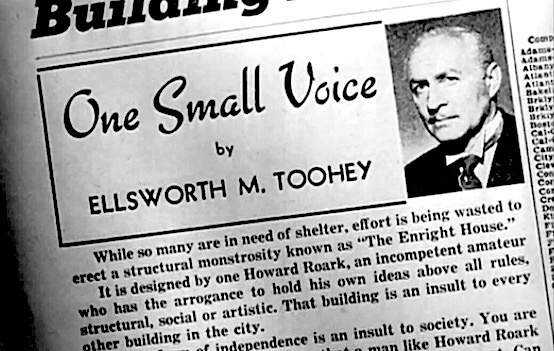 エルスワース・M・トゥーイーは、その論壇から、芸術や文学、ニューヨークのレストランや国際的危機や社会学などについて判決を宣告するのである。そのコラムは非常な人気を博した。しかし、建設現場作業員組合のストライキについては、トゥーイーは、ストライキを行使する人々への同情を隠さなかったが、自分のコラムでは、その件について何も語らなかった。ストライキを非難しているゲイル・ワイナンド系新聞紙上のコラムにおいては。
