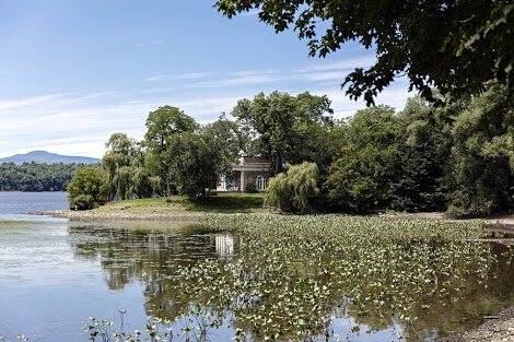 ロークが考案した邸宅は、飾り気のない自然石でできている。大きな窓と多くのテラスがついている。ハドソン河添いの庭園の中に立っているのだが、河の流れのように広々としているし、庭園のように開かれている。